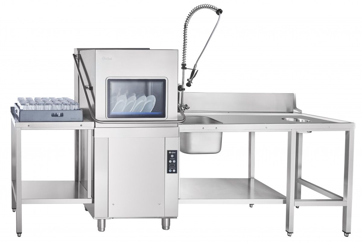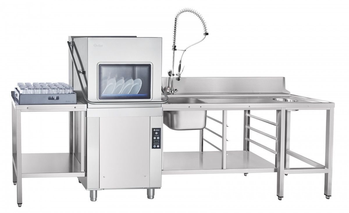 Купольная посудомоечная машина МПК-700К для мытья тарелок, стаканов, столовых приборов и подносов на предприятиях общественного питания с числом посадочных мест 50, а также с большим числом мест, при условии, что количество обрабатываемой посуды не превышает производительности машины. Конструкция машины позволяет использовать ее как при горячем, так и при холодном водоснабжении.