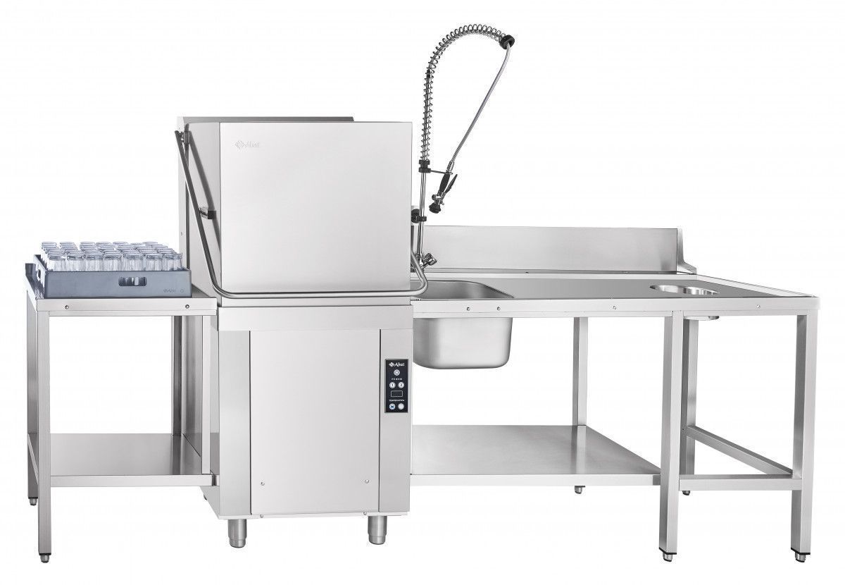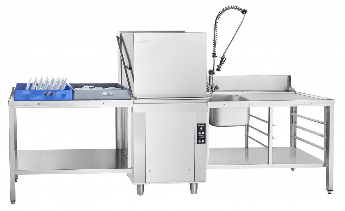 Посудомоечная машина купольного типа МПК-700К-01 для мытья тарелок, стаканов, столовых приборов и подносов на предприятиях общественного питания с числом посадочных мест 50, а также с большим числом мест, при условии, что количество обрабатываемой посуды не превышает производительности машины. Конструкция машины позволяет использовать ее как при горячем, так и при холодном водоснабжении.