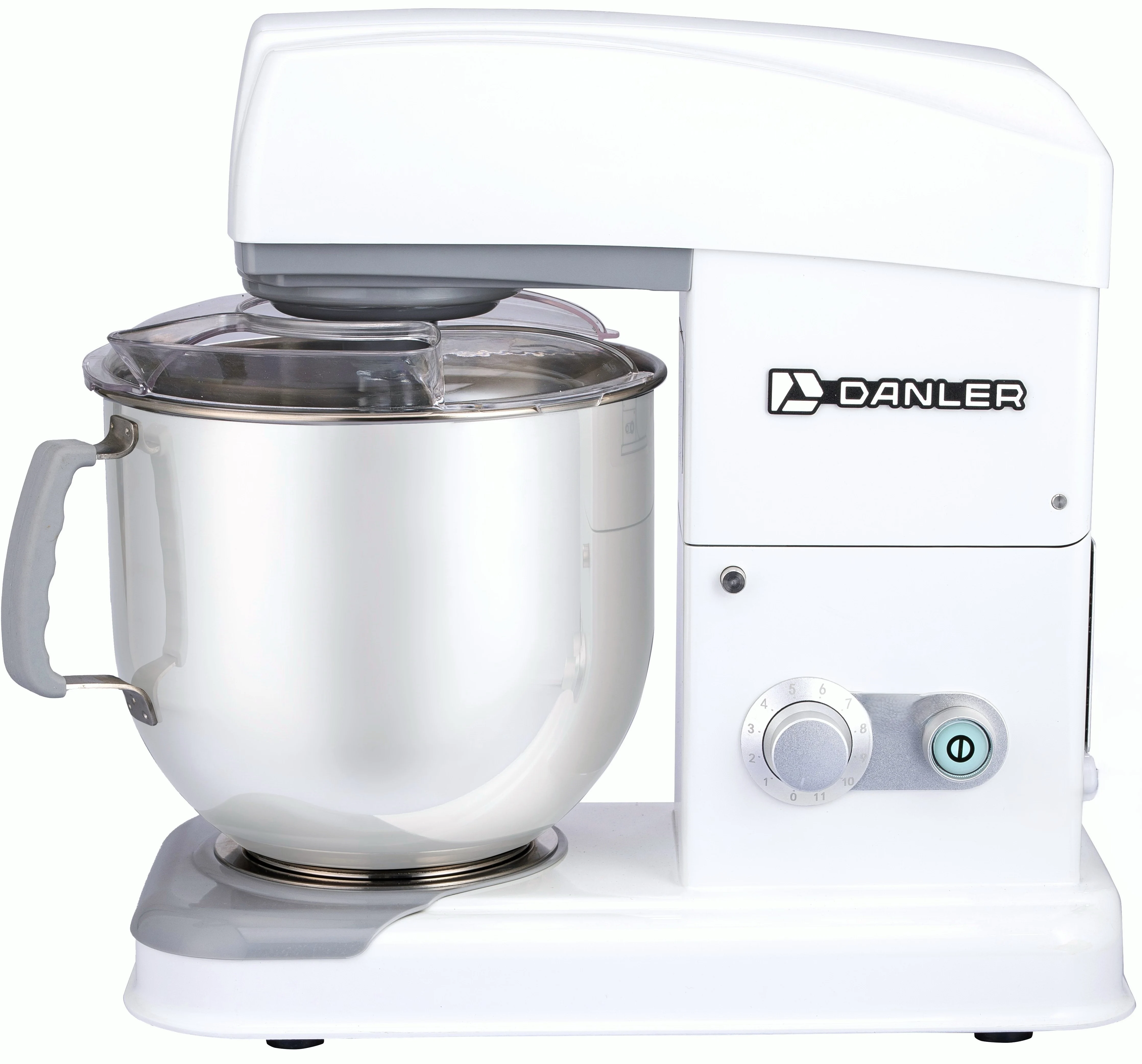 Danler MSR-7 – 3 месильных органа (венчик, крюк, лопатка), предназначен как для взбивания масс, так и для замеса дрожжевого и песочного теста. Скорость до 960 об. мин. Повышенная мощность. (0,55 кВт)
