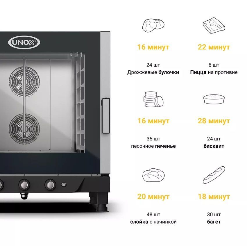 Печь конвекционная BakerLux Unox XB693 предназначена для профессионального использования. Применяется для выпечки свежих и замороженных хлебобулочных изделий.