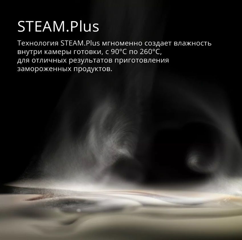 - STEAM.Plus: быстро создает необходимый уровень влажности в камере