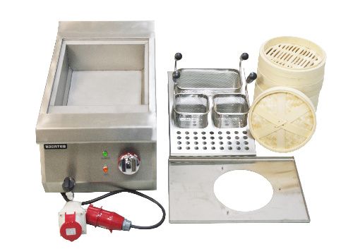 Макароноварка (паста-бойлер) электрическая объемом 10 л функциональный модуль кухонной линии 650. Без подключения к водопроводу. Подходит для отваривания и размораживания. Устанавливается отдельно или на специальном стенде. Округленные углы, декоративные ручки с накладками из нержавеющей стали, поставляется с предварительно установленными кабелями и вилками (возможно изменение точки ввода с задней торцевой стенки на дно). Рабочая поверхность и поверхности соприкасающиеся с пищей из нержавеющей стали AISI304 толщиной 1 мм; дно и задняя стенка из нержавеющей стали AISI201 толщиной 1 мм. Ванна герметично вварена в рабочую поверхность. В комплекте поставки крышка, регулируемые по высоте ножки, 2 корзины (130*130*150 мм) и 1 корзина (130*260*150 мм) из нержавеющей стали AISI304, крышка с круглым отверстием для установки корзин пароварки, корзины из бамбука диаметром 24 см, 5 шт, с крышкой. Кран для слива воды во фронтальной поверхности. Непрямой нагрев через компаунд-прослойку. Отсутствие ТЭН-ов в ванне и специальная форма дна ванны упрощают подержание макароноварки в чистом состоянии. Бесступенчатое регулирование интенсивности кипения с помощью регулятора мощности.