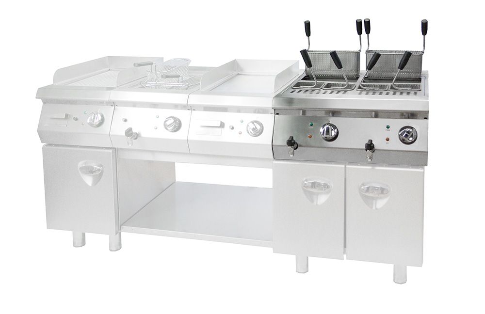 Макароноварка (паста-бойлер) электрическая объемом 18 л (2 ванны объемом по 9 л.) функциональный модуль кухонной линии 650. Без подключения к водопроводу. Подходит для отваривания и размораживания. Устанавливается отдельно или на специальном стенде. Округленные углы, декоративные ручки с накладками из нержавеющей стали, поставляется с предварительно установленными кабелями и вилками (возможно изменение точки ввода с задней торцевой стенки на дно). Рабочая поверхность и поверхность соприкасающаяся с пищей из нержавеющей стали AISI304 толщиной 1 мм; дно и задняя стенка из нержавеющей стали AISI201 толщиной 1 мм. Ванны герметично вварены в рабочую поверхность. В комплекте поставки крышка, регулируемые по высоте ножки, 2 корзины (240*120*120 мм) и 4 корзины (120*120*120 мм) из нержавеющей стали AISI304, крышка с 2 круглыми отверстиями для установки корзин пароварки, 2 комплекта: корзины бамбук диаметром 24 см, 5 шт, с крышкой. Краны для слива воды во фронтальной поверхности. Непрямой нагрев через компаунд-прослойку. Отсутствие ТЭН-ов в ванне и специальная форма дна ванны для поддержания макароноварки в чистом состоянии. . Бесступенчатое регулирование интенсивности кипения с помощью регулятора мощности.