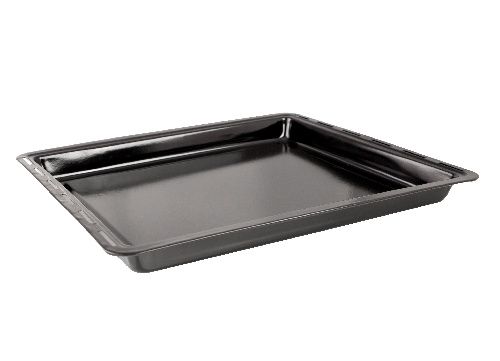 Эмалированный противень - это классическая посуда для кухни, предназначенная для жарки и запекания блюд из мяса и рыбы, выпечки хлеба, пиццы, пирожков, печенья и т.п. Прямоугольный металлический противень изготовлен из углеродистой стали со стекловидным эмалевым покрытием. Современная эмаль очень прочна, устойчива к воздействию солей, кислот и щелочей, которые содержатся в пище, в такой посуде можно готовить и хранить любые блюда. Для того, чтобы эмалированные товары для кухни служили долго, их не следует подвергать механическим воздействиям, с осторожностью пользоваться металлической кухонной утварью (ложками, лопатками, скребками), не мыть жесткими металлическими щетками и абразивными чистящими средствами. Внешние размеры стального противня 350х300 мм, размеры дна 295х245 см, высота бортика 30 мм. В бортиках имеются прорези для более равномерной циркуляции воздуха в камере печи.